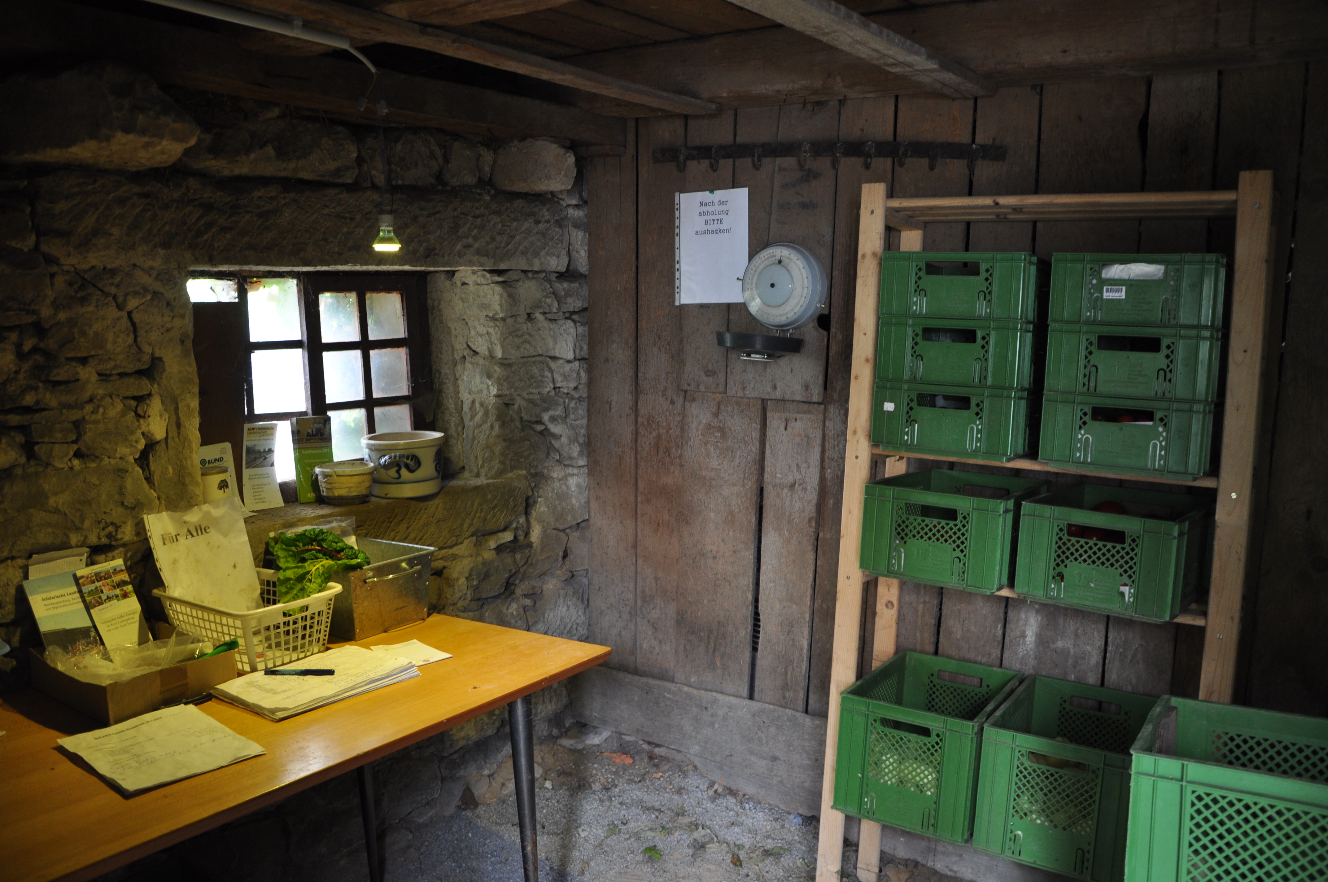 Hi Tish – yes, would like to think it’s more gentle. But on our walk this morning it appears someone may have tried to break in to my mom’s kellar, from 1544. Hard to tell. Our friend Eberhard (whose surname is dungeon master, auf Deutsch) will have a look. I thought of you when I was taking those pictures of the root cellar, and wishing I had your eye for photography. I shot some of the aubergines in a basket but it didn’t look as appealing as the vegetables from your place! It’s a great setup: my mom doesn’t charge them rent to use her space and gets to take as many vegetables as she likes in return. There’s some leafy vegetable that’s like chard we’re going to sautee tonight. Good times.